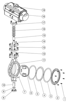 氣動對夾調(diào)節(jié)蝶閥結(jié)構(gòu)圖